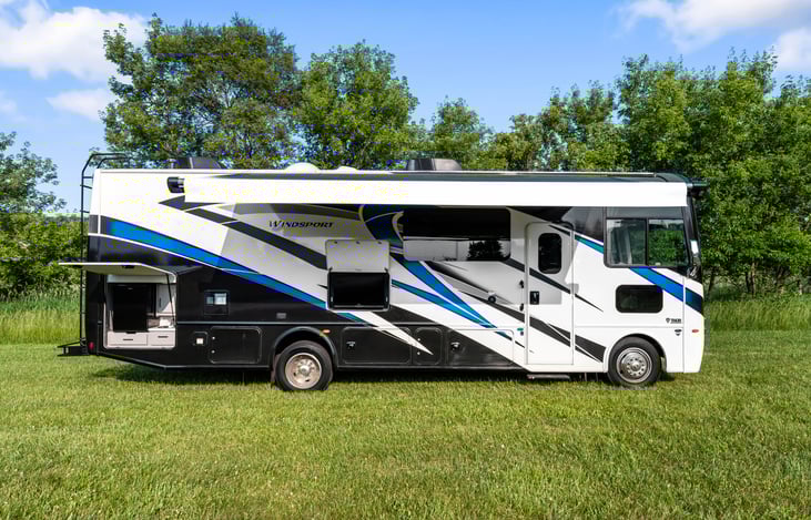 Our beautiful Thor Windsport Class A RV is brand new and ready for your adventures! It's fully stocked, and ready to go. Sleeps 7 comfortably. This RV is equipped with an outdoor kitchen and outdoor TV as well!