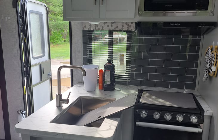 Courtney responded promptly to my request to book. The camper was delivered by 3pm. The pictures of the camper were actually representative of the camper itself (you know this can be an issue if you have ever rented something before)!!!! She added a coffee pot after I asked if she had one, even though I said I could pack my own.