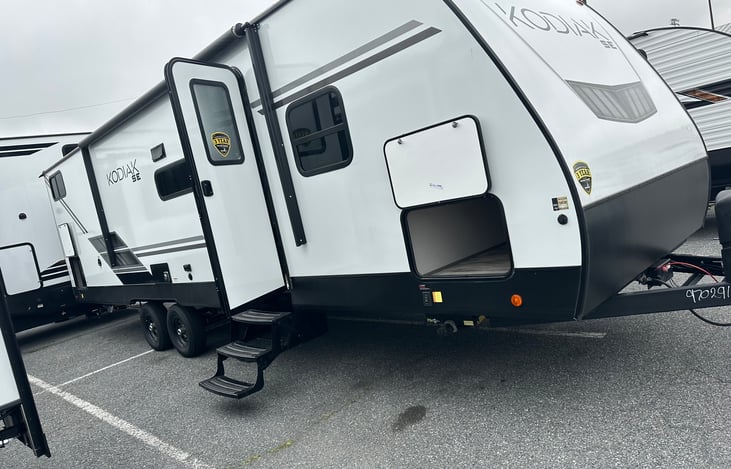 It is a 28ft kodiak. It has one slide out and can sleeps 8 comfortably. It also has electric jacks and an electric awning with a led light strip under the awning.