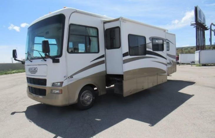 If you're looking for a comfortable and convenient way to travel, look no further than this 2007 Allegro Motor Home. With its spacious interior, including a kitchen, queen bed, twin bed, recliner, and spacious bathroom, you'll have everything you need to enjoy your travels in style. And with its clean and well-maintained condition, you can rest easy knowing that you're renting a reliable vehicle.