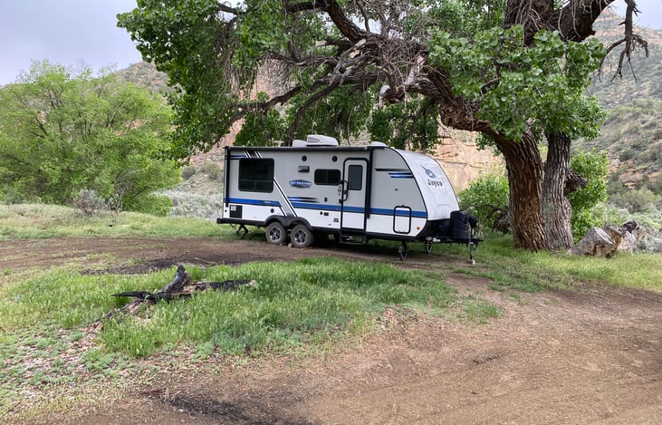 The RV was great. Pulled it with a mid sized truck and it traveled smoothly. All the trailer amenities worked very well - fridge/freezer, stove, potty, and most importantly on our trip; the a/c. The rear slide bed is a nice design. Dana and Jake were responsive communicators during the pre rental and rental periods. We had a great trip using this trailer.