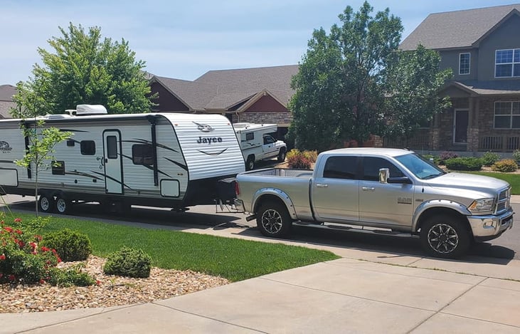 Hi , Jeff and Robin here. We are thrilled to share our 2018Jayco slx 284bhs. We have had an amazing and fun filled experience traveling throughout the beautiful state of Colorado. This very comfortable and spacious towable sleeps up to 9 comfortably. Equipped with a 50" tv for those unexpected rainy days, outdoor kitchen, outdoor shower, 3 burner stove, oven microwave and spacious shower. Ever...