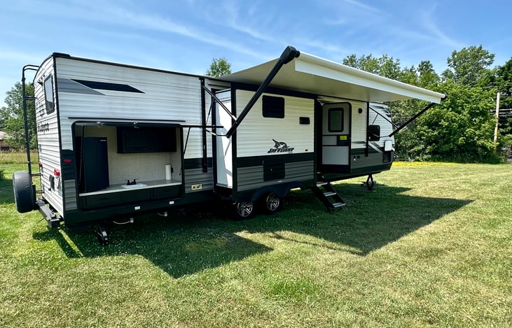 Our practically Brand New 2022 Jayco Jay Flight travel trailer is perfect for every adventure, for the whole family! This fully furnished, all linens (except towels), all cookware and dinnerware included RV will be just what you need for a family getaway.