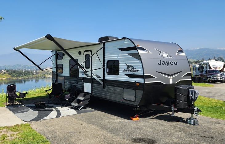 2023 Jayco 264bhw travel trailer includes 1 Queen bed, 2 bunk beds, 1 dinette conversion table, 1 fold out sofa bed. The kitchen is equipped with a stove top, microwave, oven and ample refrigerator/ freezer space. Trailer is equipped with solar panel and 2 batteries, a water heater that can run on propane gas or electric.