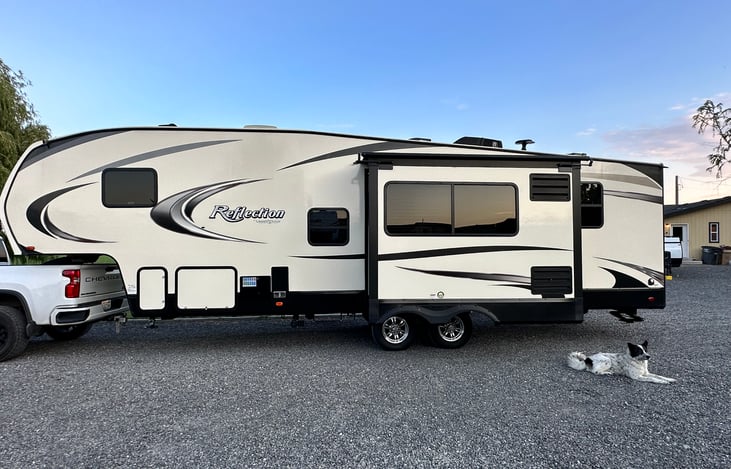 This Reflection 150 Series fifth wheel is the answer to your family's camping needs. Imagine sleeping in a queen bed while the kids have their own private bunkhouse on the opposite side. You have the choice of cooking inside with all the kitchen amenities or outside on the exterior kitchen.