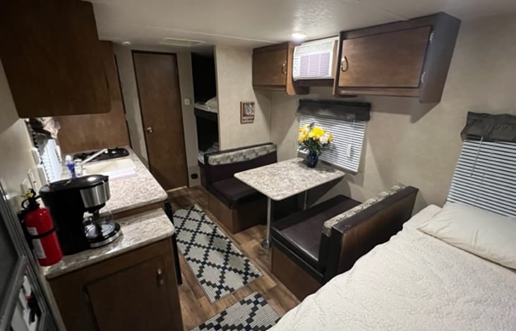 Introducing "The Cozy Cruiser" – your ultimate haven on wheels that combines snug comfort with wanderlust-inducing charm. This delightful travel trailer is the epitome of coziness, offering a compact yet inviting space where relaxation and adventure seamlessly intertwine.
