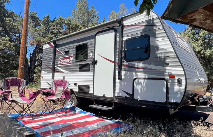 The RV is parked in my driveway, with access to a nice large yard. We are in the country where it is dark and quiet at night. Water and electrical hook ups are available. Max of 6 days for a stationary rental. Located about 10 minutes from the Deschutes County Fair and Expo Center