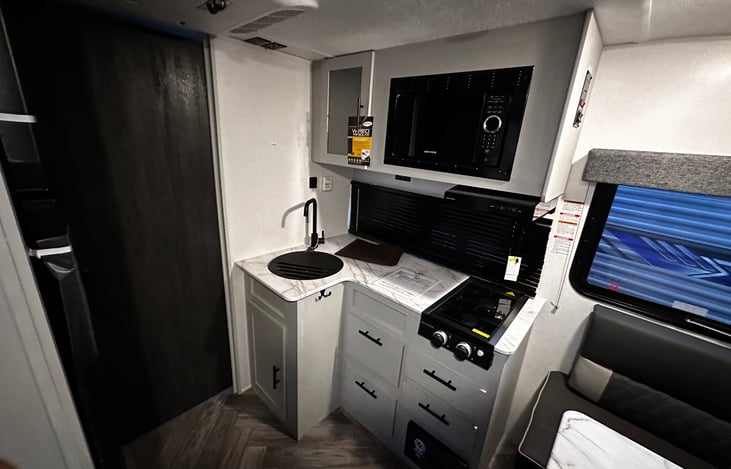 We love our Salem FSX; it has been a fantastic way to get outdoors and experience the camping world! Our rig is equipped with a spacious fridge/freezer, stovetop, microwave, deep sink, and outdoor griddle for food storage and cooking. Private bedroom with a queen bed with plenty of storage and a convertible dinette full bed. Solar panel and battery operated for boondocking experiences.