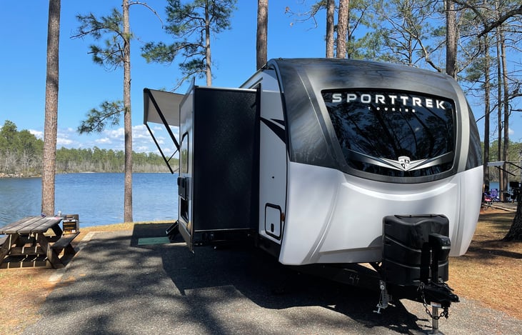 Brian recently retired after 20 years in the military, while I continue to work as a contractor with the military. We bought an RV because we enjoy taking our dogs with us and cooking in instead of eating out. We have a townhouse we rent out on Okaloosa Island called Bumble Beach, so this is our RV version. We are happy to work with you on delivering and setting up Bumble Beach so you have the bes...