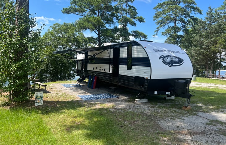 This is a brand new unit with an amazing outdoor kitchen and a great bunk system. This is a great trailer set up for amazing family memories. Unfortunately we don’t allow people to tow our rv but why do all that when we handle everything for you. We set up tear down and dump the waste!