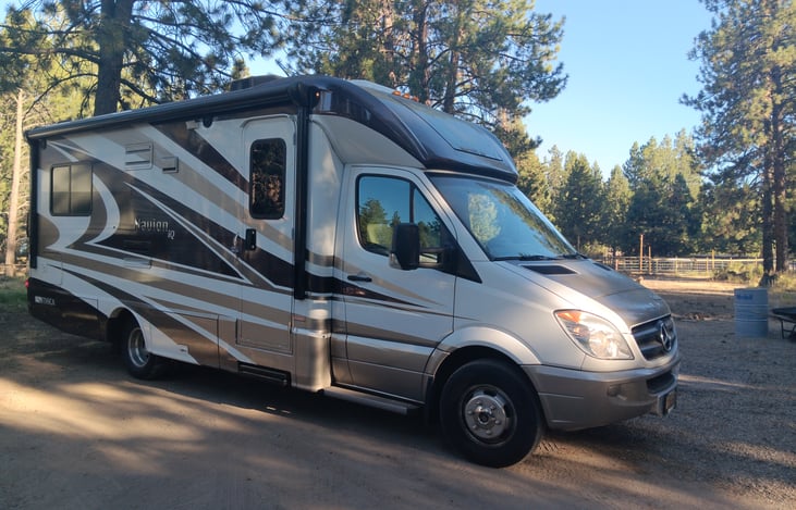 This RV Rental is a stunning 25ft Itasca Navion IQ Mercedes-Benz diesel Class C motor home. We want our renters to relax so we have fully stocked our rv for your glamping needs. All cookware, dining essentials, basic toiletries, cleaning supplies and linens are provided. Your glamping rv comes with a table top bbq and outdoor stove if requested.