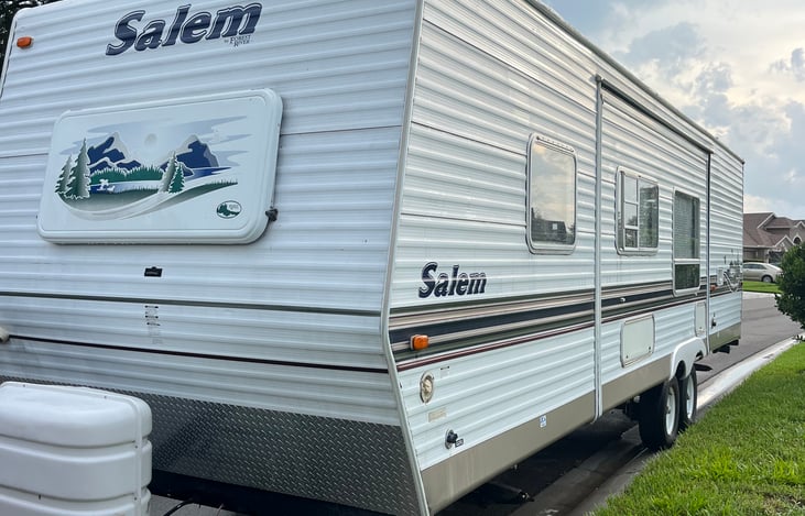 This Rv is in great condition. Tv, full kitchen, toaster oven, full bath, outdoor hot and cold shower , gas stove and oven, microwave sleeps 8 . Private master bedroom, bunk beds lower is a full and top is a single . Comes with pots pans all cooking utensils, plates silverware. Towels and sheets provided. No smoking allowed .