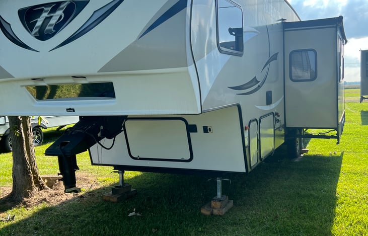 This kid and pet friendly fifth wheel is the perfectly well maintained RV for all of your adventures! 5 beds provide plenty of space for the whole family! The Outdoor kitchen is one of our favorite aminities! Master bedroom gives some privacy from the rest of the camper. Tons of storage! Fully stocked with cooking utensils.