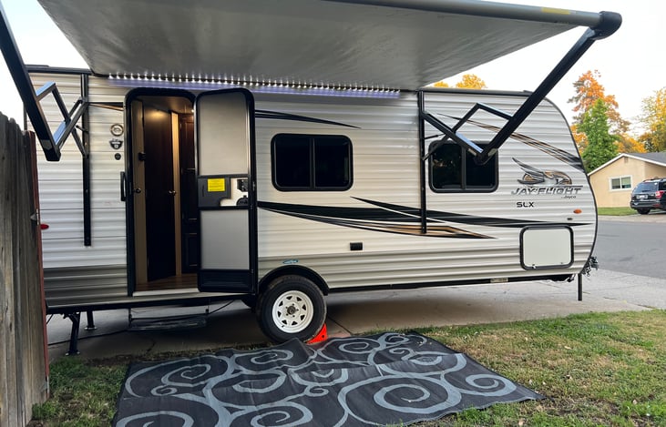 You will love my cozy little 2020 Jayco Jayflight XlS trailer, for a quick weekend get away or an extended visit to the surrounding areas. Her name is Miss K Gem, after my Aunt, who was a disc jockey. She has keyless entry and an electronic tongue jack. She comes with an RV Queen bed with a memory foam topper for a comfortable nights sleep. She also has a dinette conversion bed.