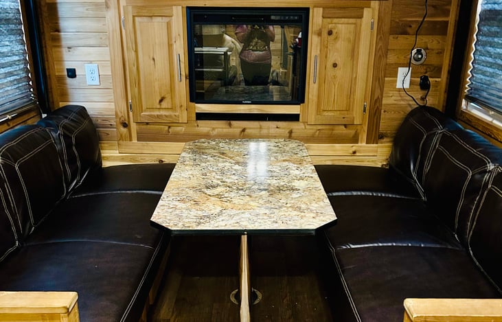 Our Rv Rental comes fully stocked with linens for the beds, towels and washcloths, dishes and cookware!