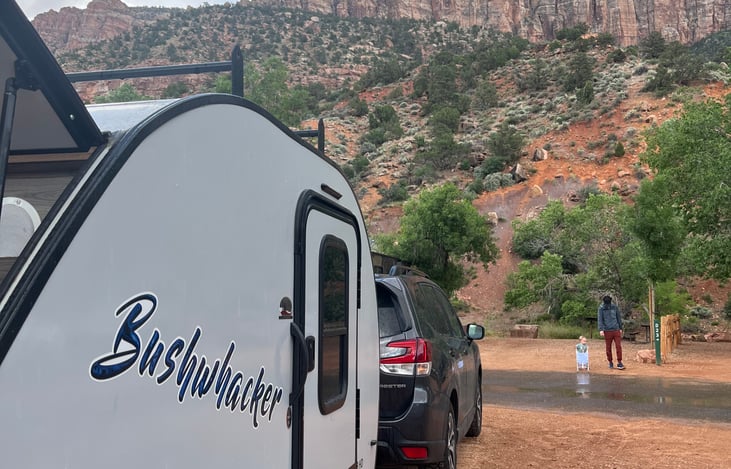 Have you ever thought about taking a tiny trip in a tiny teardrop? Our trailer is great for mini vacations. It has lots of storage, a cooler, cook top and comfy bed! Equipped with great air conditioning and heat for all weather. Perfect for 2 people or 2 people and a small child.
