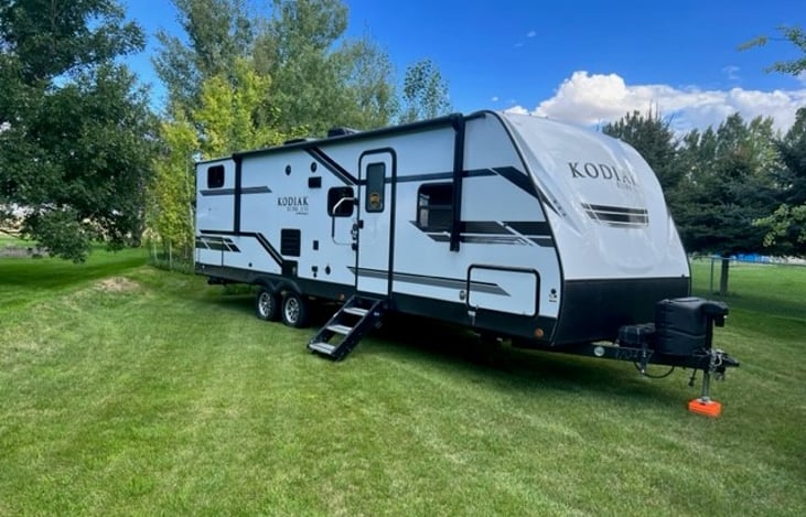 We have a spacious back yard. The trailer will be parked at our residence. Lots of trees and a fire pit that can be used. The trailer location is located just 1hr or so from destinations like Yellowstone, Jackson hole, Island Park, and others. The trailer will be hooked up to water and electric. No sewer hookups there will be a dump charge if you choose stay on the property.