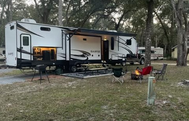 We are what some will call "Weekend Warriors". Our family loves to camp and commit to camping 1 weekend a month. We would like to share our love for adventure with other families. The Sabre is a 2022 fifth-wheel perfect for a larger family. Featuring 2 bedroom/2 bath layout perfect for larger families. The primary bedroom features a king-size bed and full size closet.