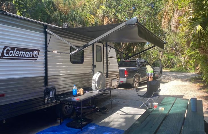 Basic but with all the necessities. We’ve been using our Coleman to enjoy camping all across Florida. Its compact size of 22ft (including trailer) and weighing under 3,500lbs makes it ideal for almost all campgrounds and most trucks/SUV's. We stock it with everything you need to get your family out and enjoying nature.