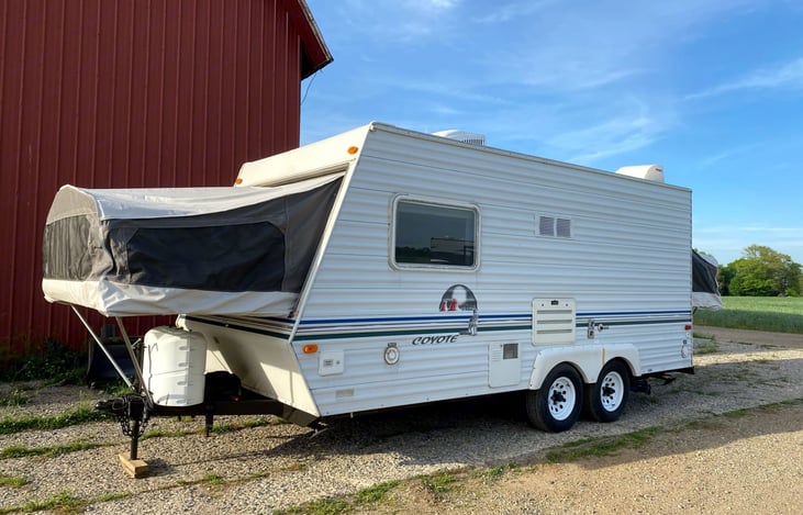 Hybrid travel trailer- gain floor space with beds that fold out like a pop-up. This 21 ft. camper may be older but is well cared for and is solidly built!