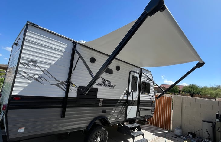 - No Standing on Rooftop of camper, No hanging or tying anything from awning.