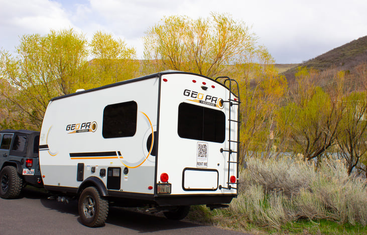 The Rockwood Geo Pro 15TB is our smallest walkable travel trailer in our lineup. It has a full, modern interior design you won't see in any other Geo Pro, with a fully completed interior and exterior renovation. This trailer is perfect for families of all sizes, with its two twin beds that make it into a king bed.