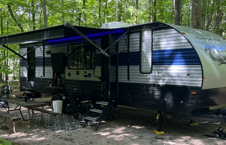 I am a very outgoing person in the outdoors. Live on the water in Shawano, WI. Take the winters off of my career for outdoor hunting/fishing, and family travels. I work for a very large marine dealership almost 7 days a week starting in spring through fall. My camping season starts in august so figured instead of my camper sitting all summer, i mine as well let others use it.
