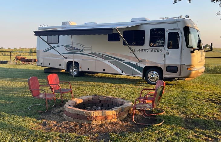 Fancy is a 2000 Allegra Motorhome that we are renting as a delivery travel trailer only. It has been recently redone in a modern black and white style. It has all the comforts of home for you to enjoy your time at the lake. It requires a 50 amp hook up being that it has 2 AC's to keep you cool. Has, TV's, fridge/freezer, shower, table that makes into a bed, futon, and hide-a-bed.