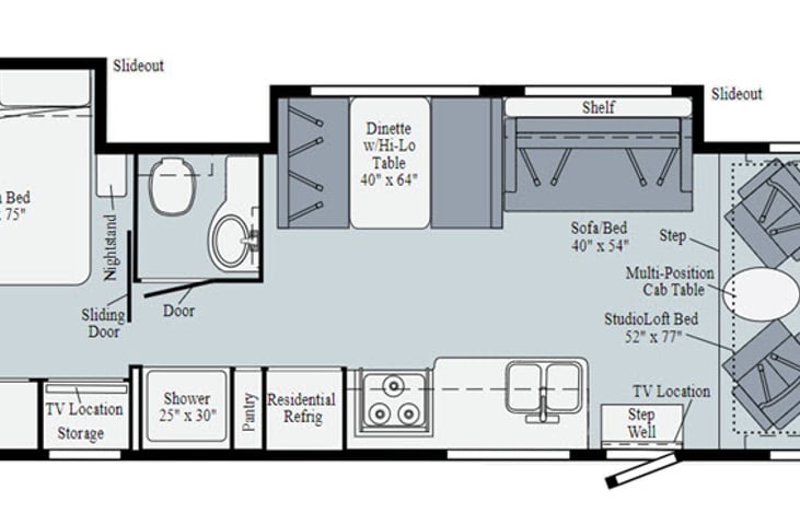 Mileage and generator hours that are included in a rental vary by listing. You can view the nightly mileage and generator hours that are included when renting this RV, as well as fees for excess mileage and generator usage, in the Rates and Availability section.
