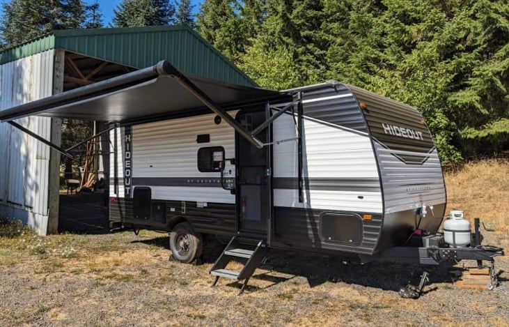 We rented the hideout from Roy and Marissa for our 3 day camp trip with our family of 4. The camper was stocked with all the necessities; bedding, utensils, dishes, flashlights, outdoor grill , kid activities, and more. Drop-off and pickup at our house was quite helpful, Roy was able to give us a quick overview. Overall experience was 5 stars and will be renting from them again! Thanks Roy!