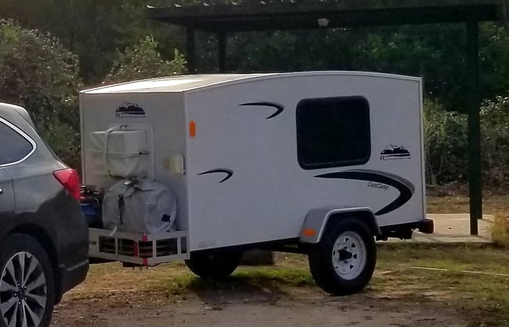 This lightweight camper can be towed by any vehicle and sleeps 2 side by side on one bed. Setting up is a breeze and takes only a few short minutes. It comes equipped with a memory foam mattress complete with bedding and 2 pillows and a mattress protector. Load up your gear onto the front cargo rack and on top of the bed and just go!