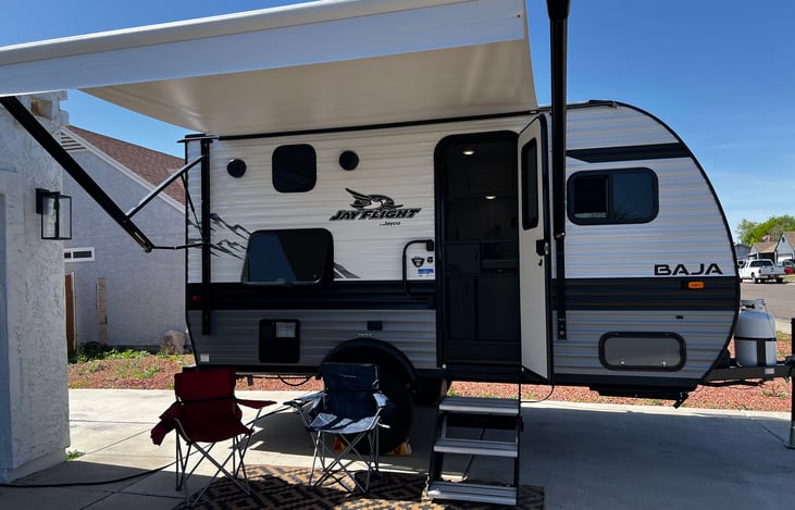 This 2023 Jayco Jay Flight Baja Bunkhouse is brand new!! Fully stocked for your basic needs as well. This spacious camper is great for hosting couples as well as small families with kids that will love the bunk beds. The pets are even invited!! We welcome long distance adventurers, weekend campers, hunters, music festival lovers and long-term renters!