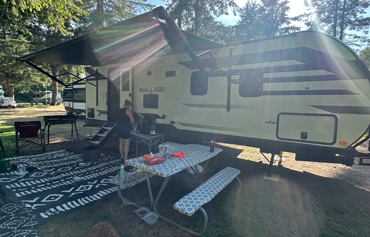Hi there! Welcome to our 2021 mallard! Come stay in our cozy and roomy RV! We pretty much have everything set up for your camp trip getaway to make it feel like a home away from home! Kids & dogs welcomed!