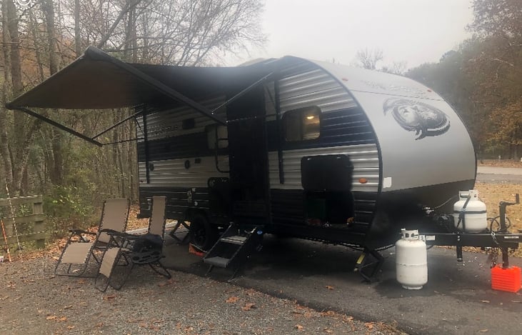 This cozy lightweight camper is ready for your next or first time camping experience. Easy to haul with most vehicles. We can also haul for you and set it up / brake down. Camper has all the amenities you need. We provide everything you need bed linens, pillows, towels, shampoo, soap, rags, paper towels, toilet paper, cooking utensils, coffee pot, toaster, pots pans, flattop, and games to play.