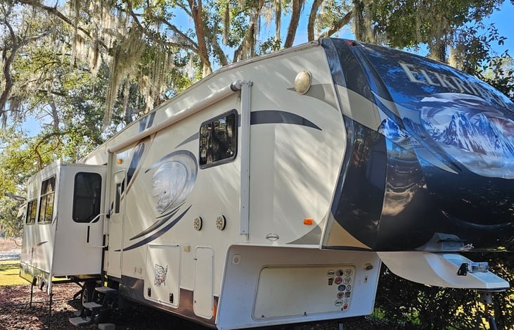 Enjoy Crystal River Florida in this beautiful fully furnished RV. Pets welcome. Wifi, TV, grill, fireplace, AC, King bed, massage recliners, kitchen ware, loveseat with hideaway bed, and much more. A little touch of home.
