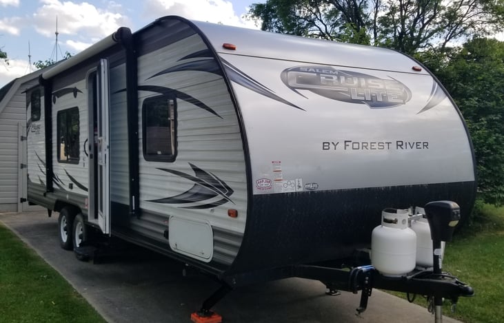 Delivery Only this season. Sorry for any inconvenience . 2016 Forest River Salem Cruise-Lite travel trailer 29' with rear bunks. Sleeps up to 7 comfortably, dinette and couch turns into beds. Storage on both sides of queen bed and underneath access to storage. Good size fridge with separate freezer. Kitchen area has decent storage.