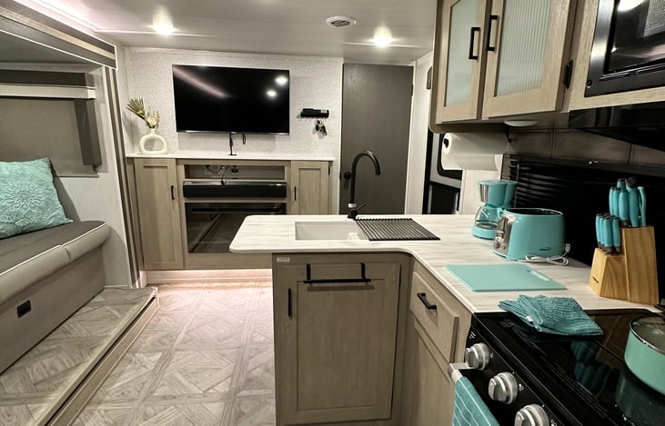 Great for families and friends to have fun in the outdoors! Trailer comes with two smart TV's, and a color changing fire place, sound system and games to be enjoyed by the whole family.