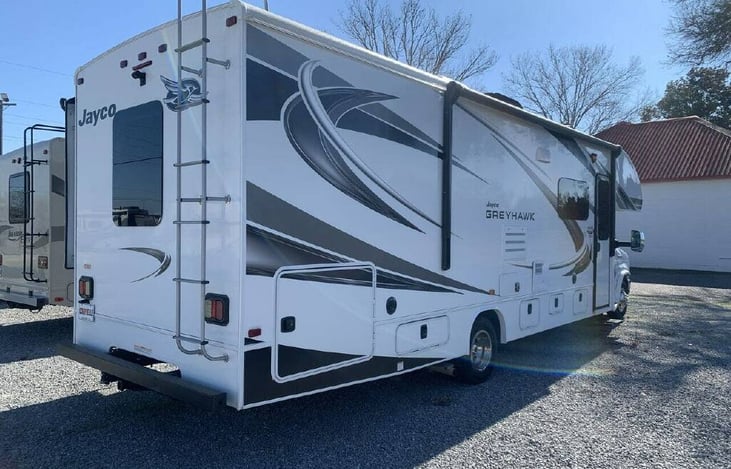 2020 Jayco greyhawk 29mv. This is a high-end Class C motorhome 32 ft in length. Has two large slide outs and sleeps 8 comfortably. Fully self-contained with 50 gallon water storage and on board generator. Private rear walk around queen bedroom with Lots of storage. Split bathroom with walk-in shower. Large slide out with couch and dinette convert to double beds. Large full size queen over cab bed.