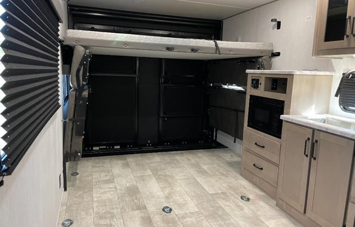 Absolutely fantastic! The toy hauler was extremely clean, felt new, and well stocked with all the basic necessities. The bunks in the garage perfectly accommodated the kids. The dual A/C kept us nice and cool in 90+ degF temps. And so much fresh water! only. Four people solely used the camper for drinking water, potty, and shower. After eight days we still didn’t use it all!
