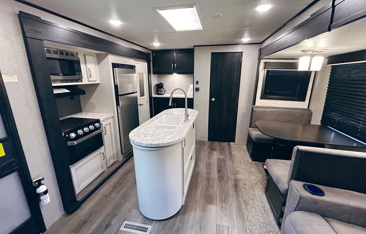 The RV and the hosts, Stacey and Justin, were wonderful to work with. The RV has 4 bunk beds in the bunkhouse and an outdoor kitchen which was very useful. The master bed is super comfortable, but the bunkhouse mattresses could be thicker. The hosts were very responsive and the RV was clean and in good condition. They provided everything included all linens, blankets, and pillows.