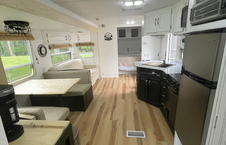 Hi! We are Brett and Brandi, the proud owners of “Our Happy Camper”. We live in southern Illinois with our two children. We love to travel and go on family adventures. We hope our camper will make your family as happy as it has made ours. If you have any questions, please reach out!