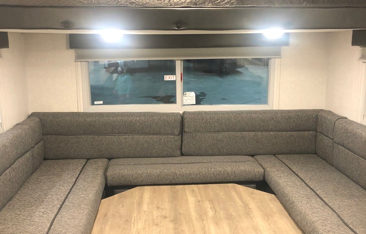 We love taking this out for an ice fishing adventure or a camping excursion. It fit our family of 4 perfectly! Very comfortable sleeping, spacious fridge and freezer space. The sink and stove are a great addition as well as the microwave. TV set up with a ROKU remote. Very comfortable living! Our definition of glamping :)
