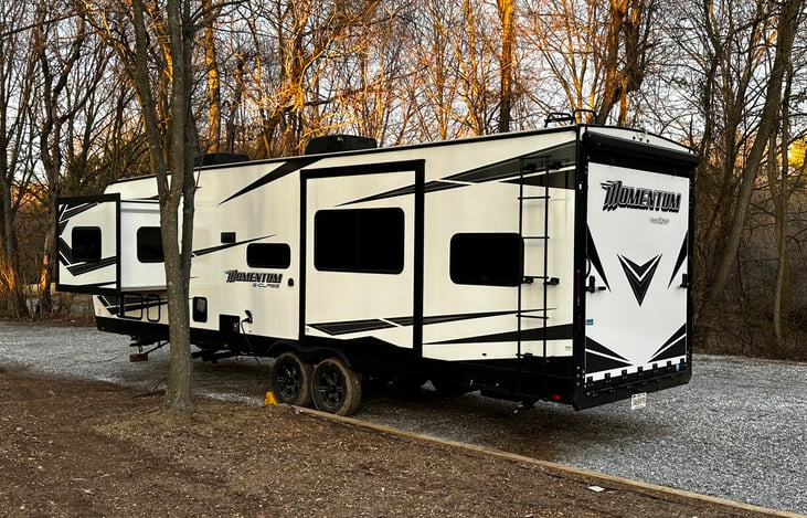 Grand Design Momentum 2022 21G Toy Hauler in great condition ready for your next trip. 36' Long, 12'8"H. Dry weight 8,975lbs, GVWR 12,000lbs, Hitch Weight 1,600lbs. 40lbs propane, 57G Black tank, 37G Grey tank and 100G Fresh water Tank.