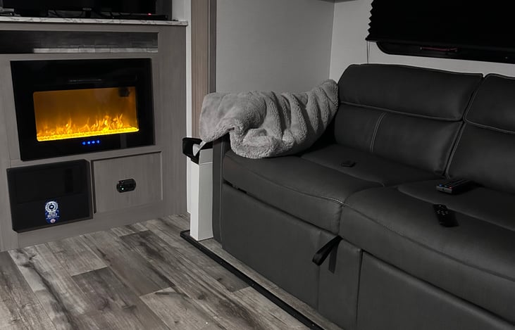 Our travel trailer comfortably sleeps 3-4, thanks to a slide out creating ample space.