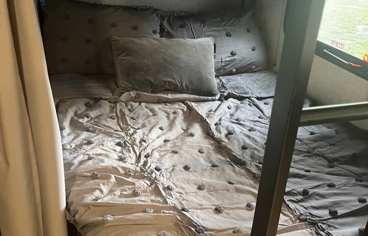 Hello fellow campers! We love our trailer and would love for others to enjoy it as much as we have. Our trailer comes equipped with various sleeping options including a bunk house (full size beds), dinette conversion, sofa conversion, and a queen size bed in the back. We have two TVs with an adapter to connect to most WiFi networks within the campgrounds (situations may vary).