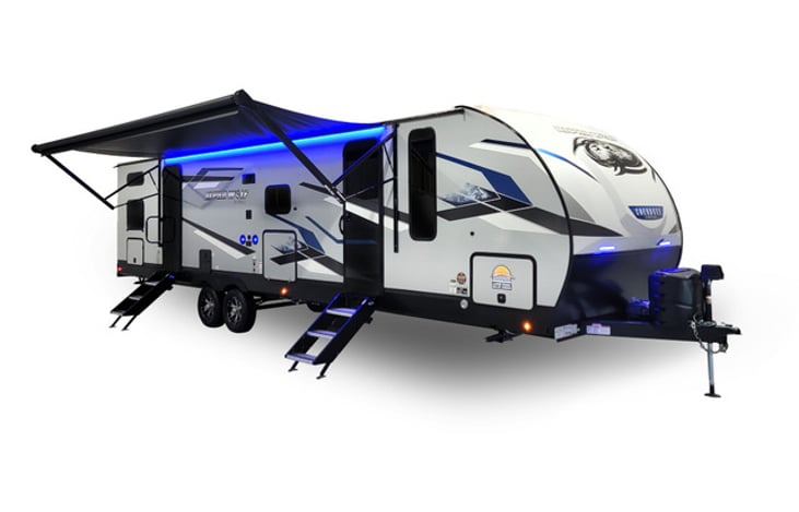 Brand new RV, used only a few times. Equipped with everything you need for an enjoyable and relaxing camping trip. Includes large outdoor rug, 4 camping chairs, beach umbrella, fresh linens, pillows and blankets , pots and pans, plates, cups, utensils, coffee maker, griddle and much more.