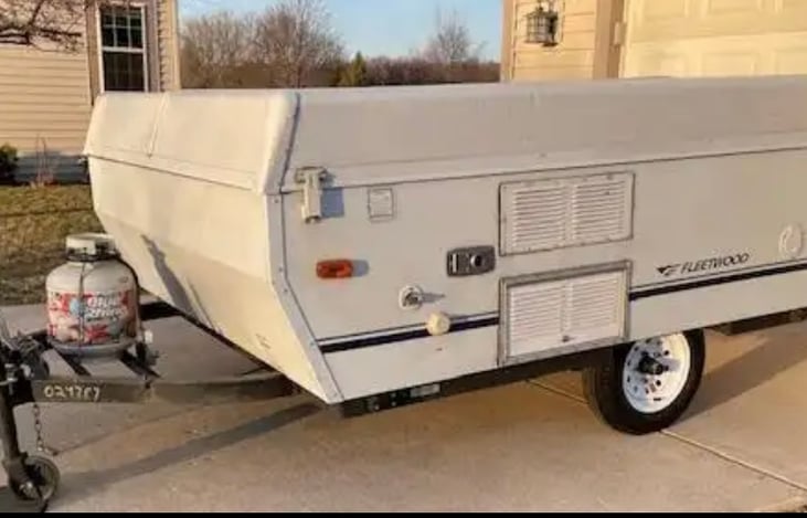 Fleetwood comes standard with 3 beds, sink, stove, fridge, dinette, heat and a porta potti storage. Camping mat provided along with basic linens, dishes and cookware.