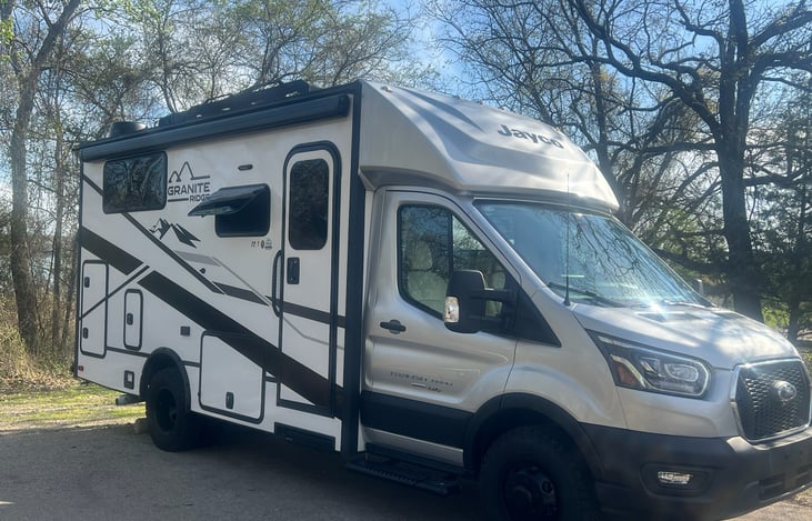 Our 2024 Granite Ridge is perfect for two people traveling to highway destinations or urban settings due to it's easy to drive 22 ft chassis. We love the extra storage in the rear garage, and the all wheel drive with all terrain tires. For sleeping you will like the option of two twin beds or convert it to a kingsize bed.