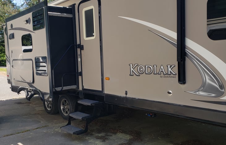 Welcome to our Kodiak of Dreams, Marshmallows, campfires, and memories. Our trailer is stocked with pots, pans, toaster, ice maker, coffee pot, tea pot, spices, microwave, glasses, coffee/tea cups, plates, and silverware.
