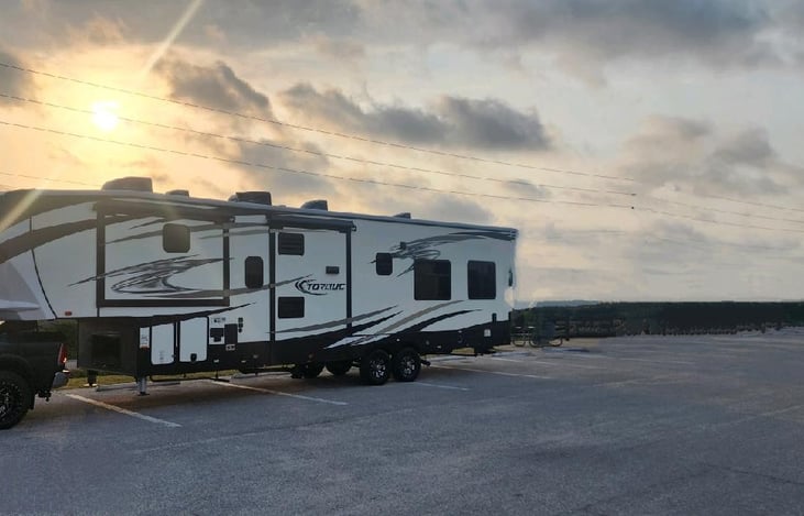 This 39 ft toy hauler is spacious and has all the luxury anyone could ask for to enjoy their vacations...